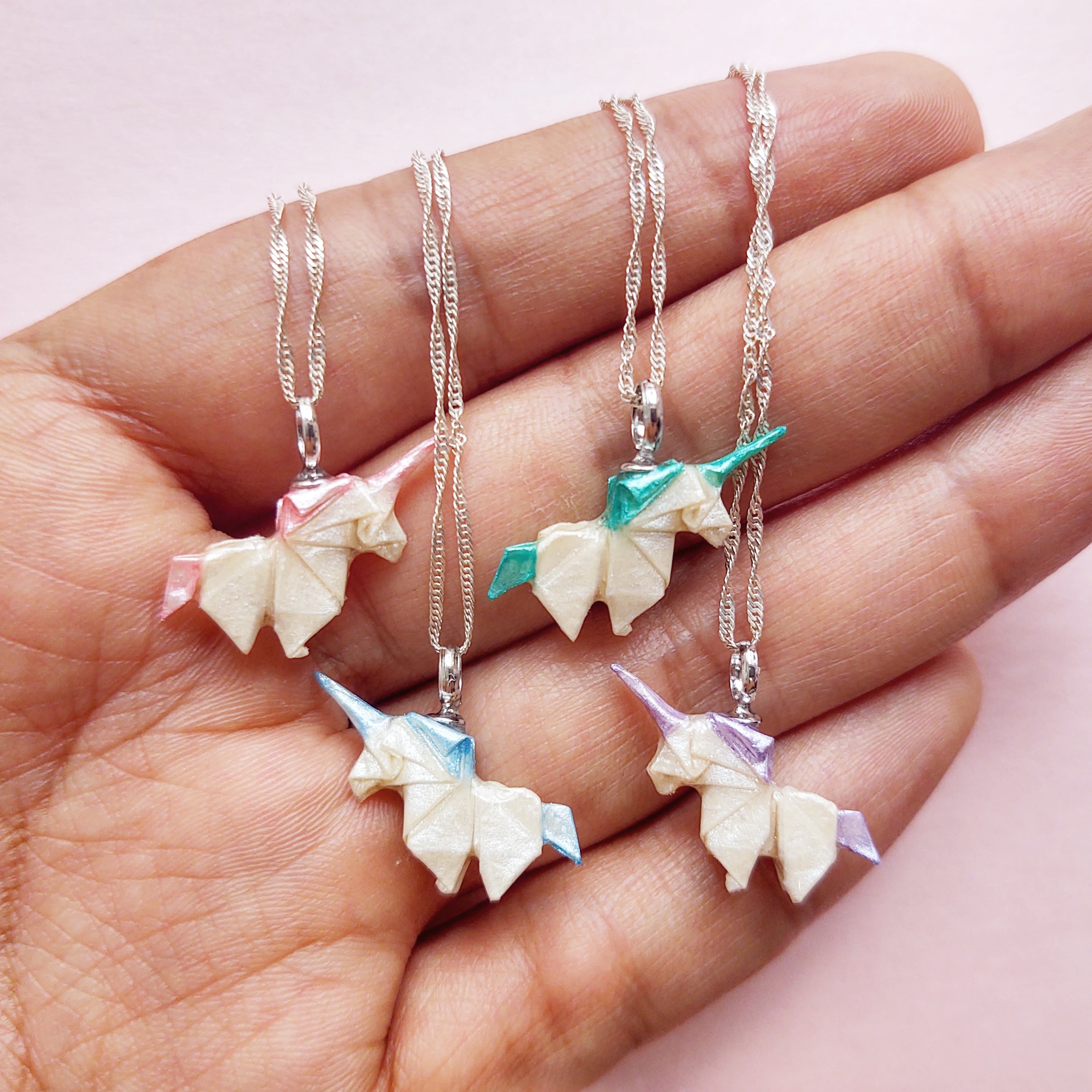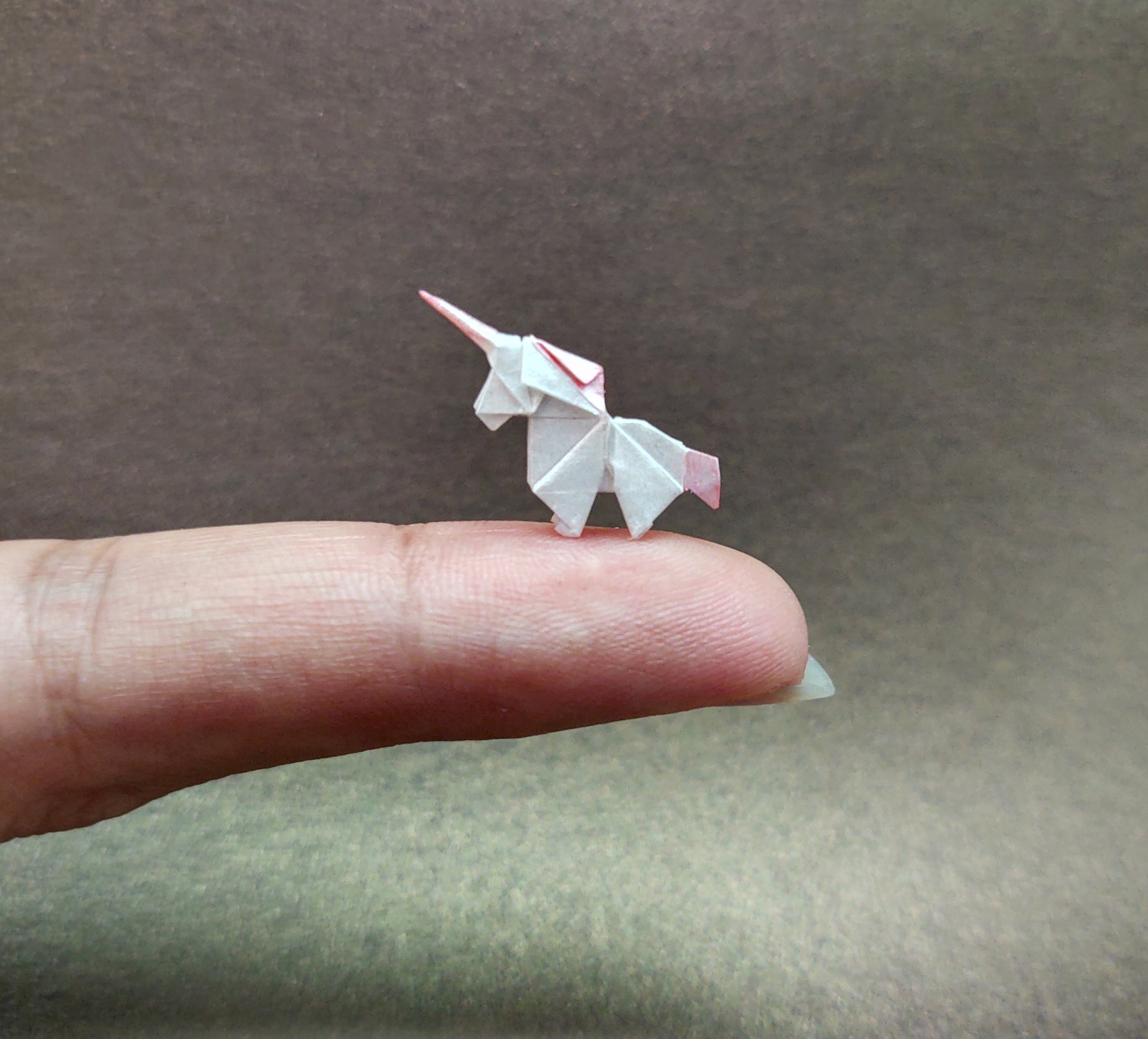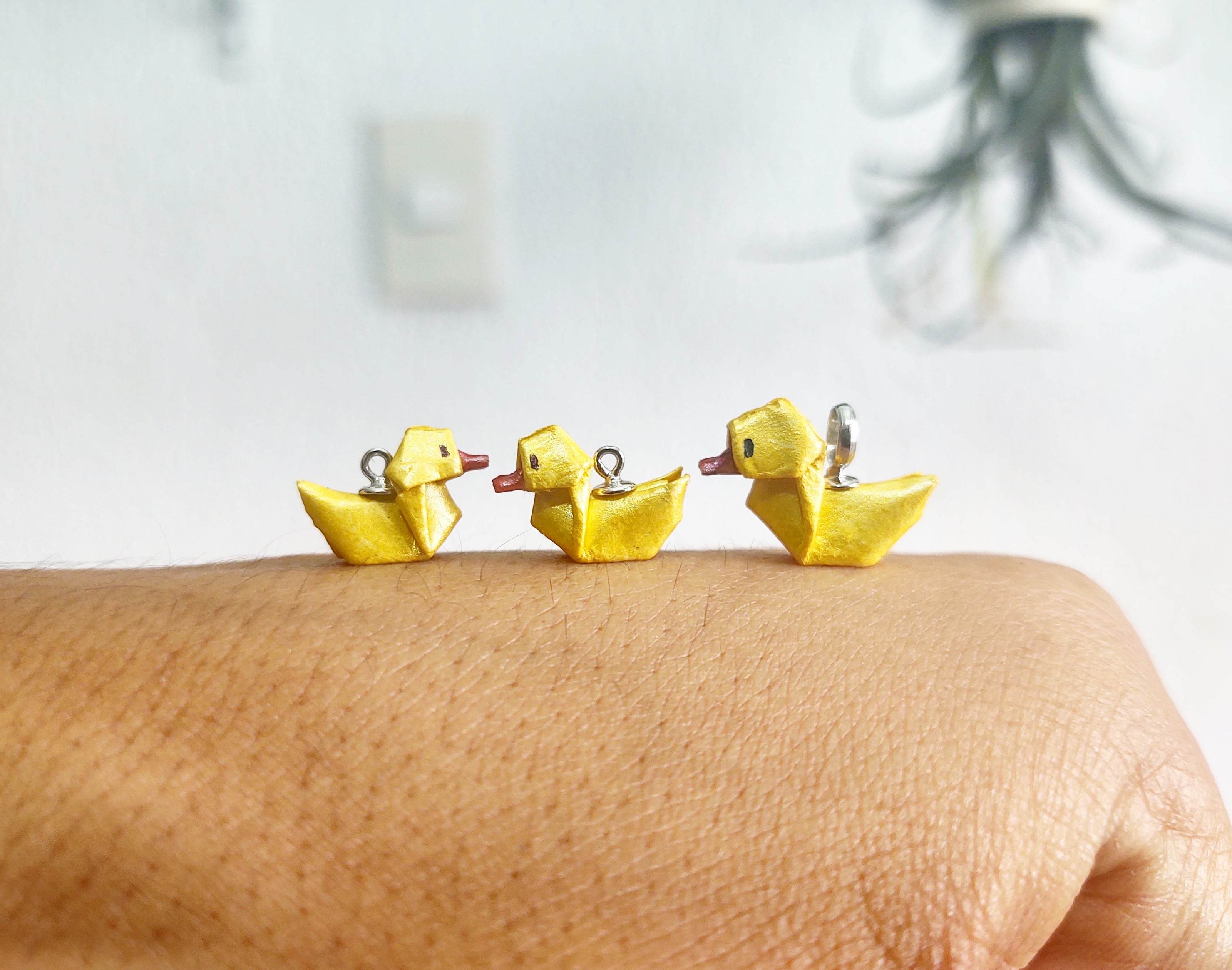A lo largo de éstos siete años de vida hemos experimentado con diferentes tipos de papeles pero mis favoritos son los blanco metalizados que pinto a mano para dar el detalle a las figuras y el papel chiyogami japonés. El tamaño de papel más grande que utilizamos es de 7cm y el más pequeño de 0.75cm. Siempre comienzo el dobles con las manos y finalizo con ayuda de pinzas de joyería para definir los detalles más pequeños.